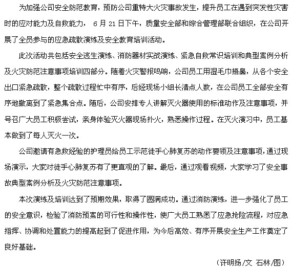 公司開(kāi)展消防應(yīng)急疏散演練及安全教育培訓(xùn)活動(dòng)
