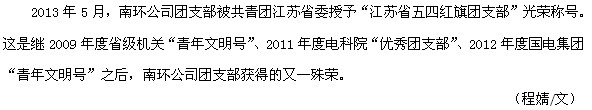 南環(huán)公司團(tuán)支部榮獲2012年度“江蘇省五四紅旗團(tuán)支部”稱號(hào)