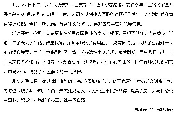 迎青奧 促環(huán)保 創(chuàng)文明——南環(huán)公司文明創(chuàng)建志愿服務(wù)社區(qū)行