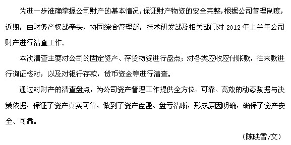 我公司順利完成2012年上半年資產(chǎn)清查工作