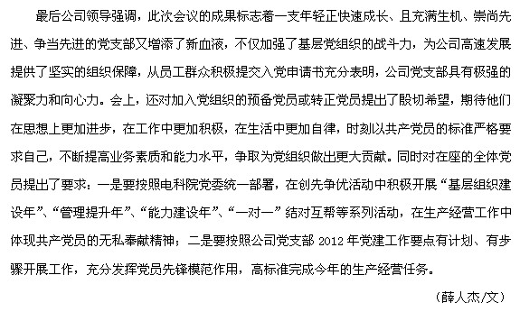 七一前夕召開黨員大會 發(fā)展新黨員增添新血液