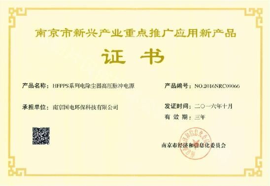 近日,我公司兩項產(chǎn)品,“HFPPS系列電除塵器高壓脈沖電源”及“超低排放氣態(tài)污染物檢測儀器”榮獲南京市經(jīng)濟和信息化委員會頒發(fā)的《南京市新興產(chǎn)業(yè)重點推廣應用新產(chǎn)品證書》。