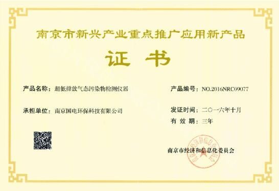 公司產(chǎn)品榮獲南京市新興產(chǎn)業(yè)重點推廣應用新產(chǎn)品證書
