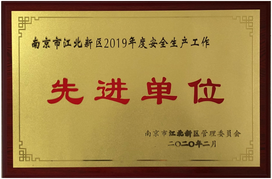 近日,公司被南京市江北新區(qū)管理委員會(huì)授予“2019年度安全生產(chǎn)工作先進(jìn)單位”榮譽(yù)稱號(hào)。