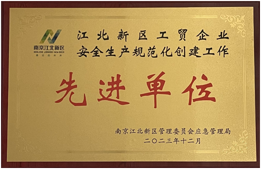 公司榮獲江北新區(qū)工貿(mào)企業(yè)安全生產(chǎn)規(guī)范化 創(chuàng)建工作“先進(jìn)單位”稱號