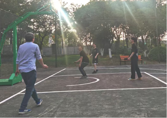 籃球場(chǎng)改造工程剛剛竣工,迫不及待的籃球愛(ài)好者不約而同地聚集在籃球場(chǎng),打起了半場(chǎng)比賽。沉寂已久的場(chǎng)地重新迎來(lái)伙計(jì)們靈動(dòng)的身影,大家歡聲笑語(yǔ),活力四射。一天繁忙工作的疲憊頓時(shí)煙消云散!