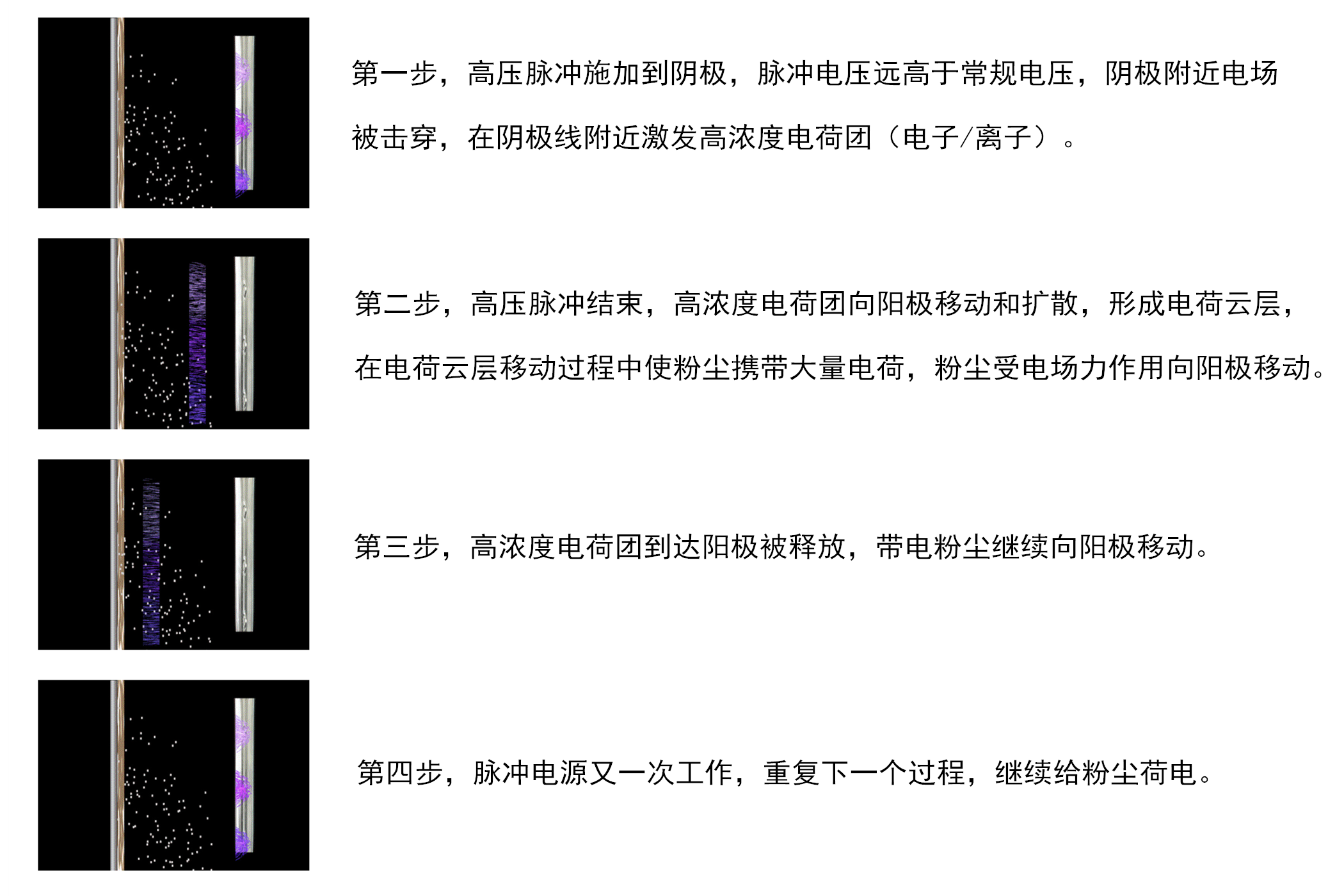 高比電阻粉塵在電場電流較大時,會導(dǎo)致電荷積累在粉塵層中,在粉塵層中形成較高的電壓,產(chǎn)生反電暈。在脈沖電源供電情況下,因平均電流較小,減輕了粉塵層中的電荷積累,因而可減弱反電暈的發(fā)生。因此,煤種和粉塵的適用性大幅提高,對高比電阻粉塵(比電阻在1011~1015)等惡劣工況具有廣泛的適應(yīng)性。