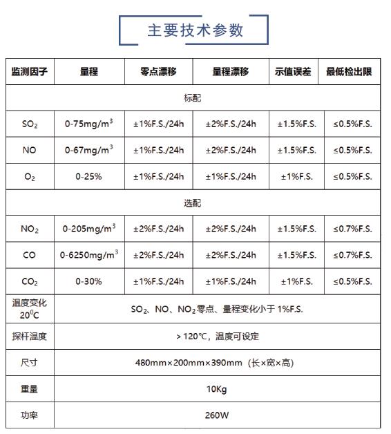 除了S02、N0和02,NO2、 C0、CO2可選配。