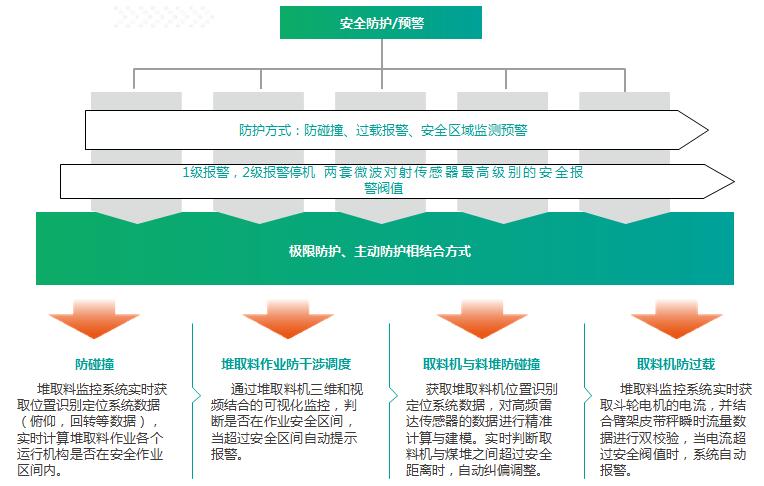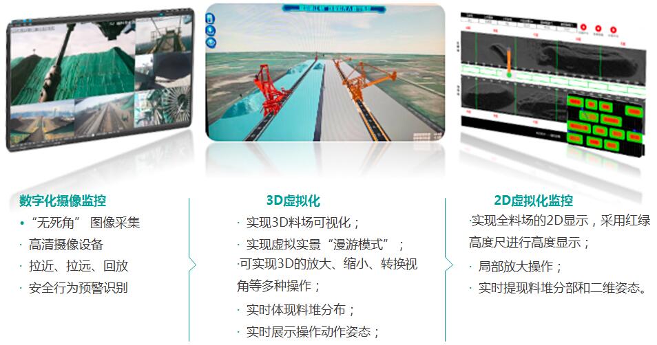 包括編碼器以及冗余的位置測量,精準(zhǔn)定位堆取料姿態(tài),安裝激光、雷達(dá)、紅外對射等物聯(lián)網(wǎng)感知,集成數(shù)字化攝像等信息
