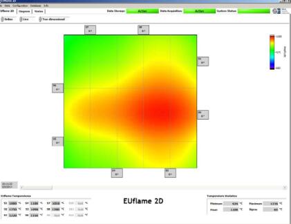 火焰溫度2維軟件能夠獲取所有傳感器的信息。通過(guò)對(duì)任意傳感器組合,能夠計(jì)算相應(yīng)的2維溫度場(chǎng)分布狀況。軟件應(yīng)用是在Windows環(huán)境。