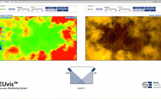 系統(tǒng)的軟件采用熱圖像分析算法對攝像監(jiān)測系統(tǒng)進(jìn)行了升級,能確定局部溫度分布,有助于發(fā)現(xiàn)燃燒異常過程能進(jìn)行定量分析。