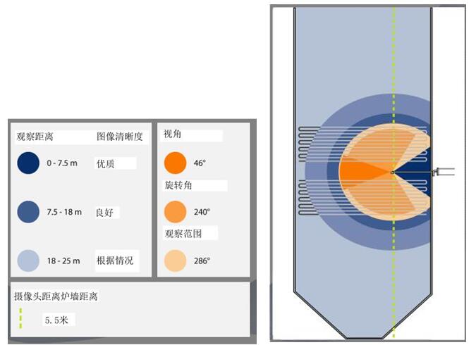 監(jiān)測結(jié)焦積灰機器人實際是一種插入式攝像系統(tǒng),它能在鍋爐滿負荷運行條件下貫穿鍋爐(深度5.5米),持續(xù)監(jiān)測鍋爐受熱面管道的工況。